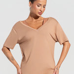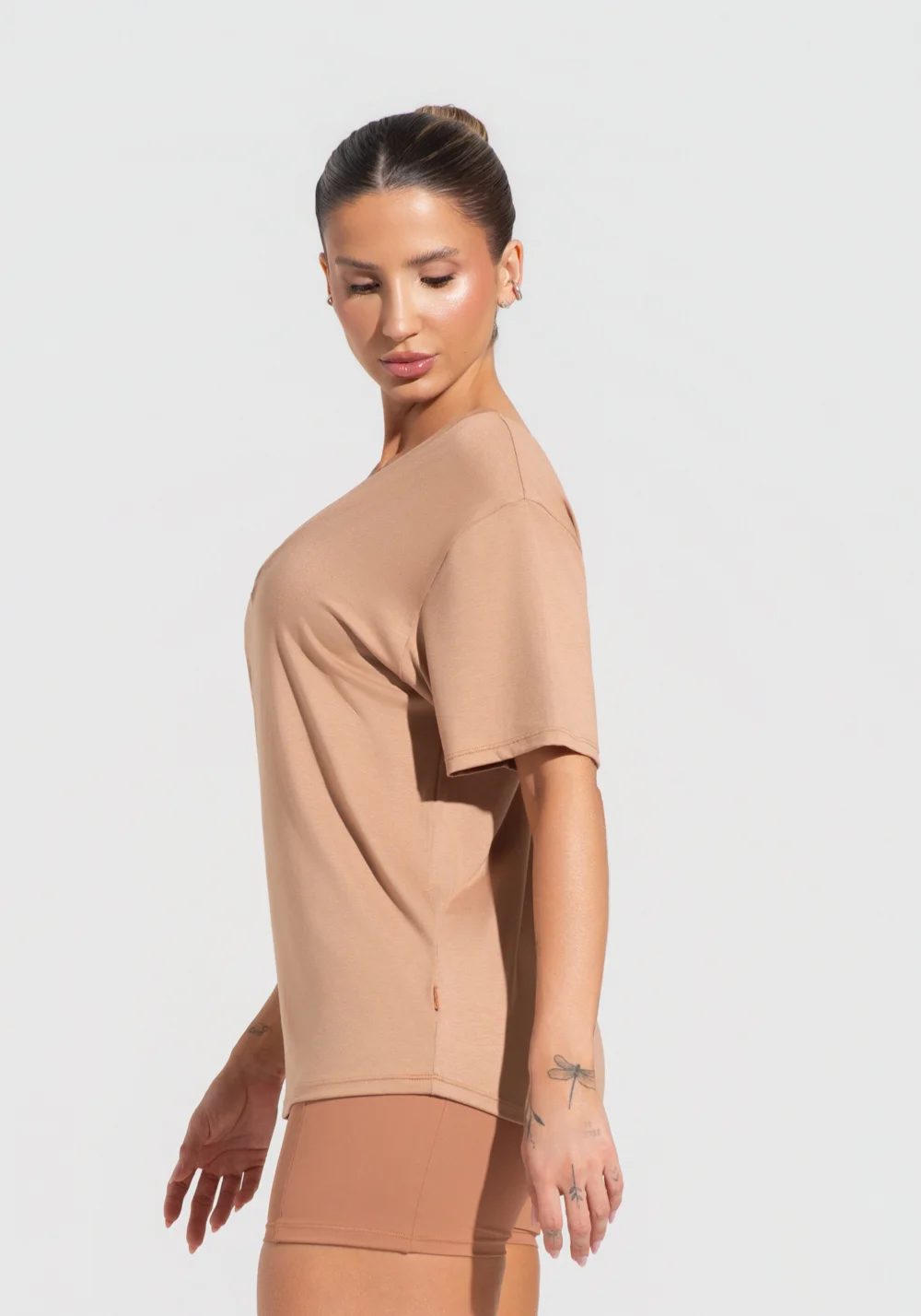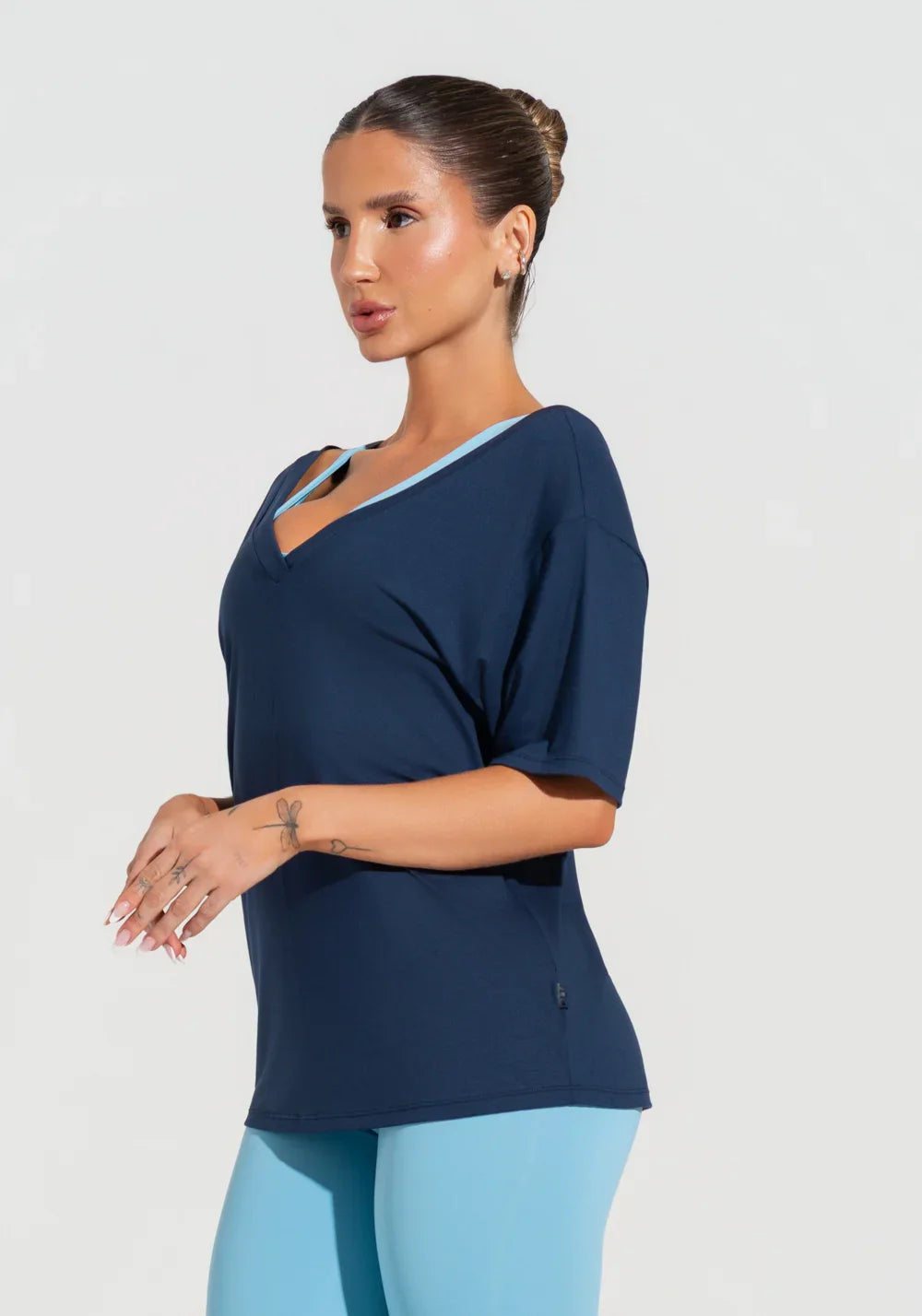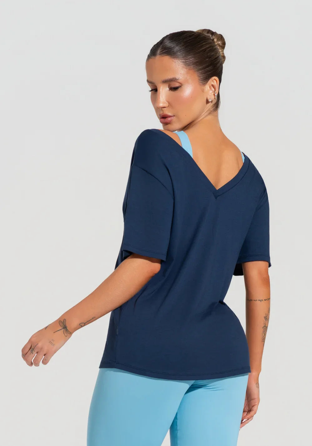 Com um decote V e uma modelagem soltinha que respeita o corpo, essa blusa é a escolha perfeita para quem busca bem-estar, estilo e liberdade de movimento. Com visual leve e caimento fluido, essa peça transita do treino ao momento de autocuidado com autenticidade e propósito.