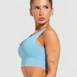 O top com decote V valoriza o colo com elegância e suavidade. Feito em poliamida de toque macio e boa elasticidade, ele traz segurança para a prática de atividades físicas com sustentação que respeita o corpo. Seu design proporciona um visual moderno e feminino, sem abrir mão da funcionalidade.