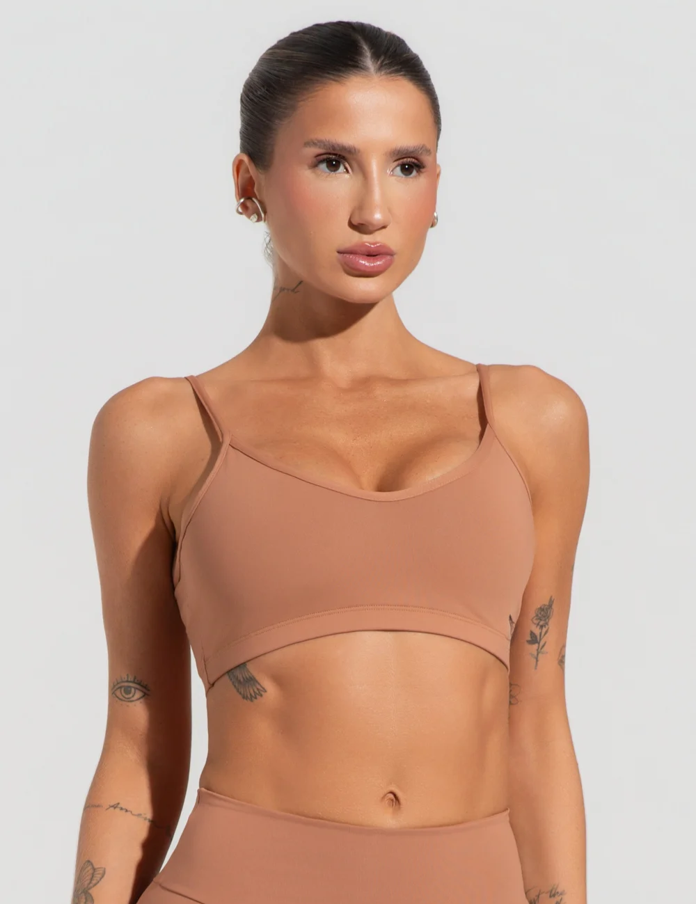 Top fitness feminino com alças finas reguláveis soul caramelo