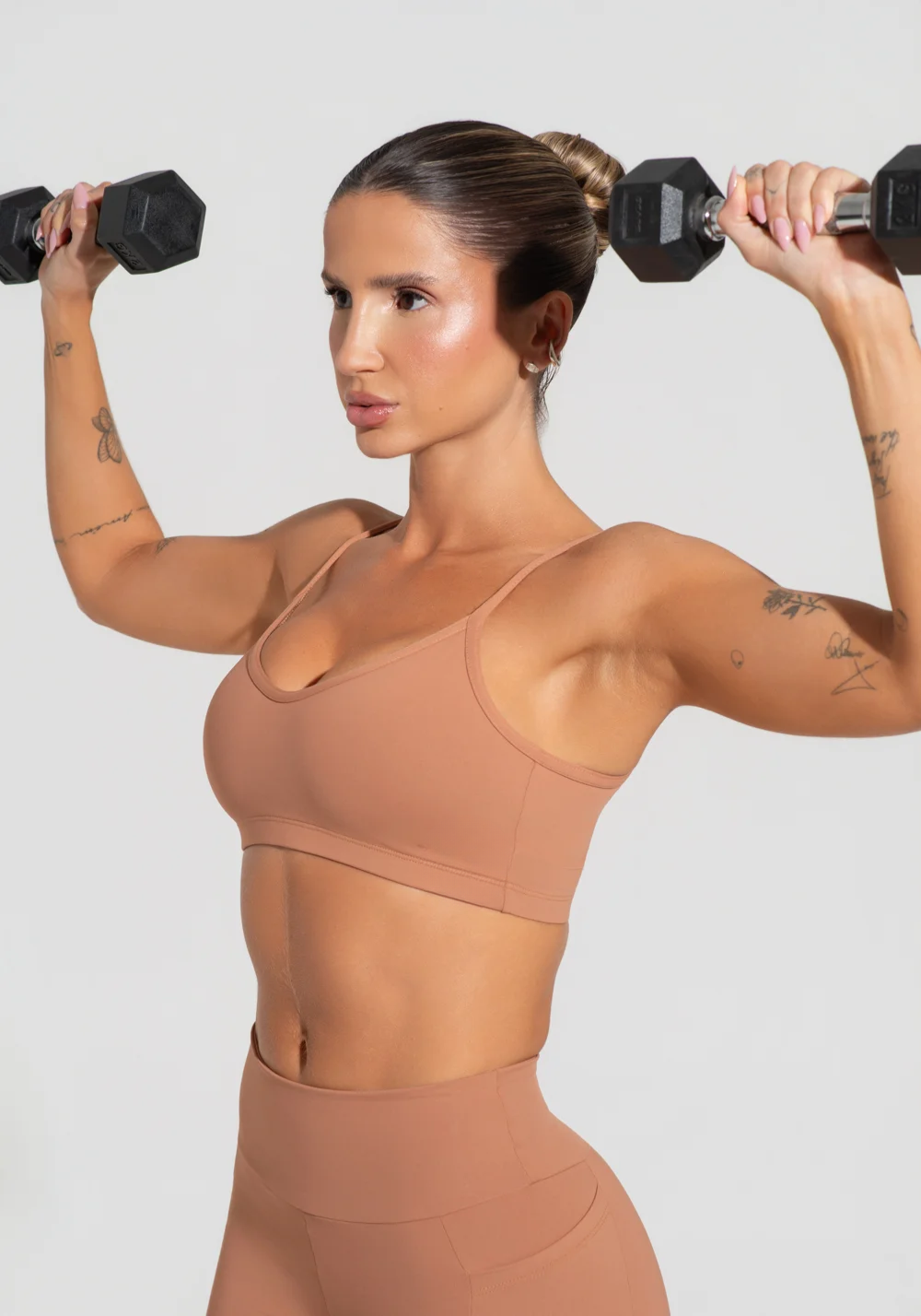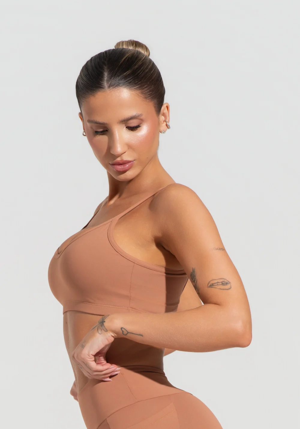 Top fitness feminino com alças finas reguláveis soul caramelo